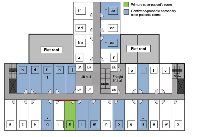 The epidemiologists at the WHO also produced maps. This is the map of the 9th floor of the hotel metropole in Hong Kong